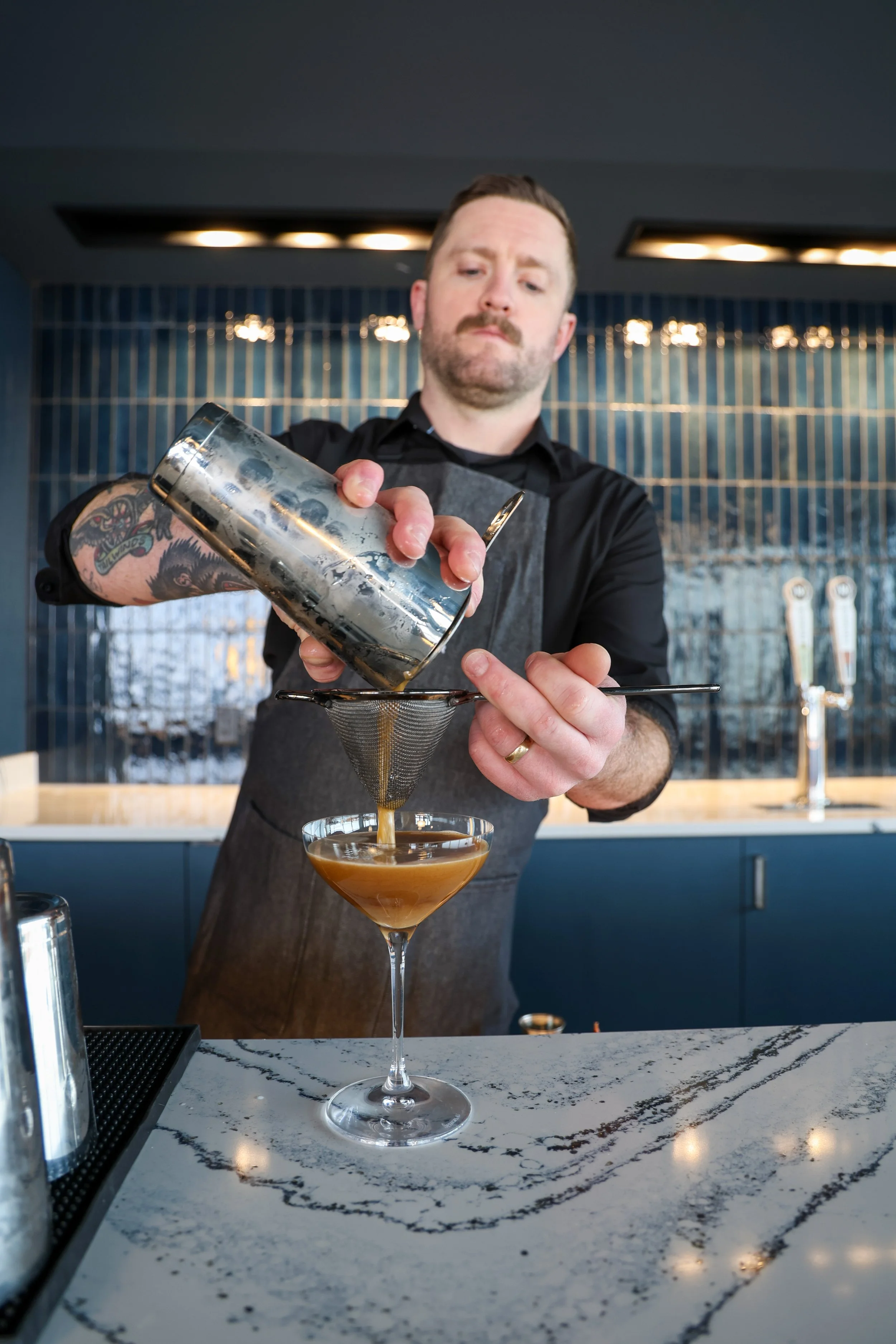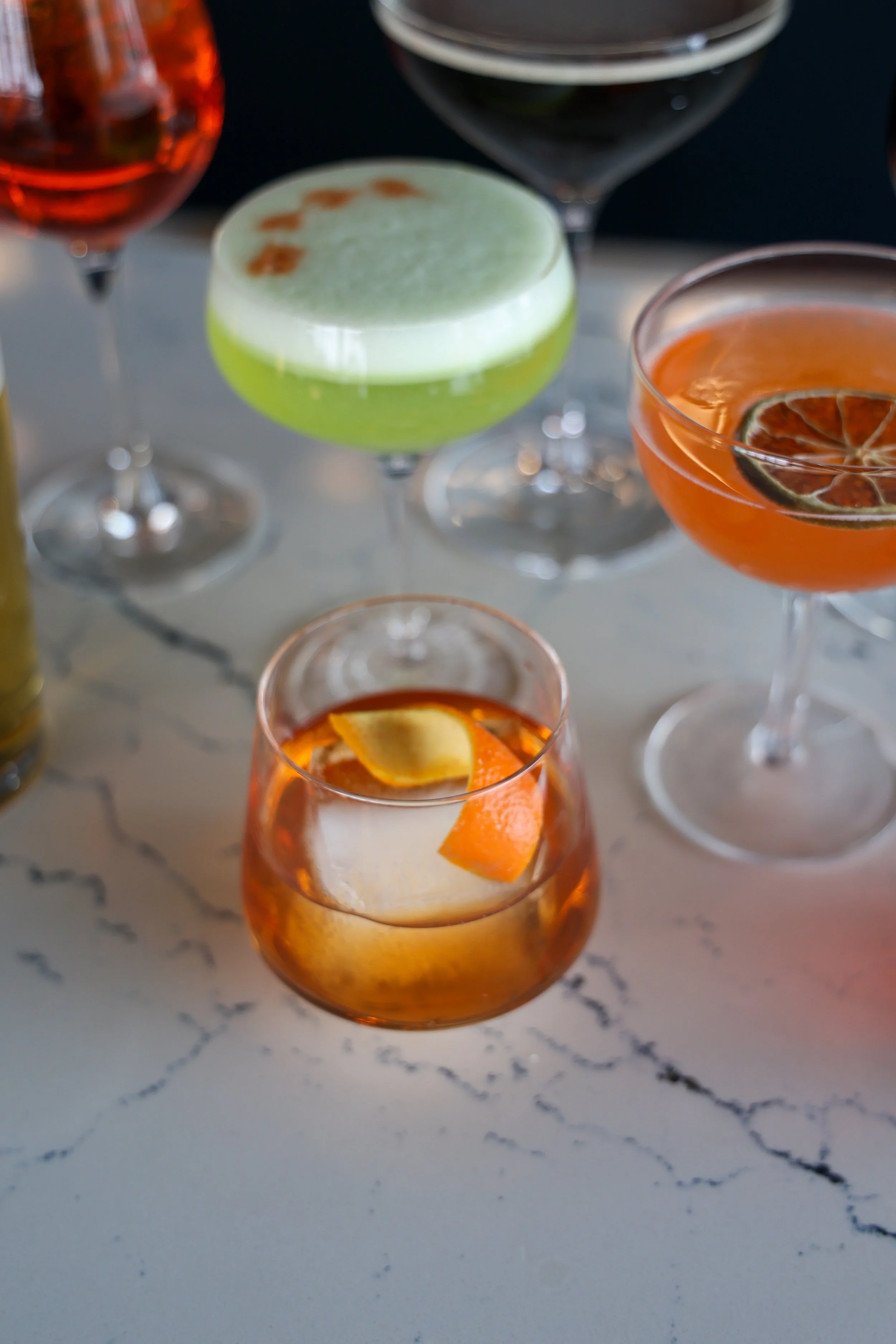 Signature or featured cocktail pricing is determined by ingredient selection, garnishes, and required preparation time, and may further vary depending on whether the cocktail can be pre-batched in advance or must be prepared individually upon order.